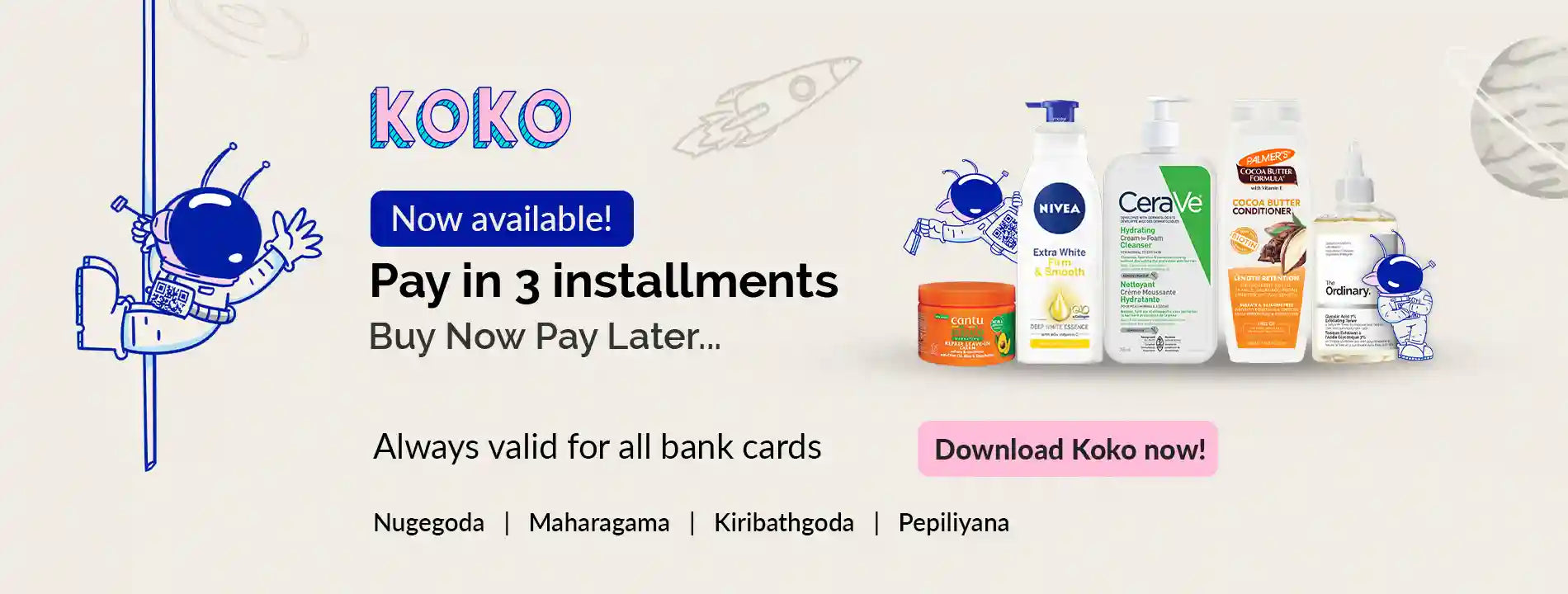Shop for yourself, your family and your loved ones – From Men, Women to Mother care and Baby care. Find amazing products for everyone. As one of the top leading Cosmetics seller in Sri Lanka, we take pride in offering the most premium international brands : Palmers, Dr Rashel, The Ordinary, L’Oréal, TRESemmé, Cetaphil, The Body Shop, Nivea, CeraVe, St.Ives, Aveeno, Wagner, Olay, Johnsons, Now, Neutrogena, OGX, Sanford, Sebamed and more.