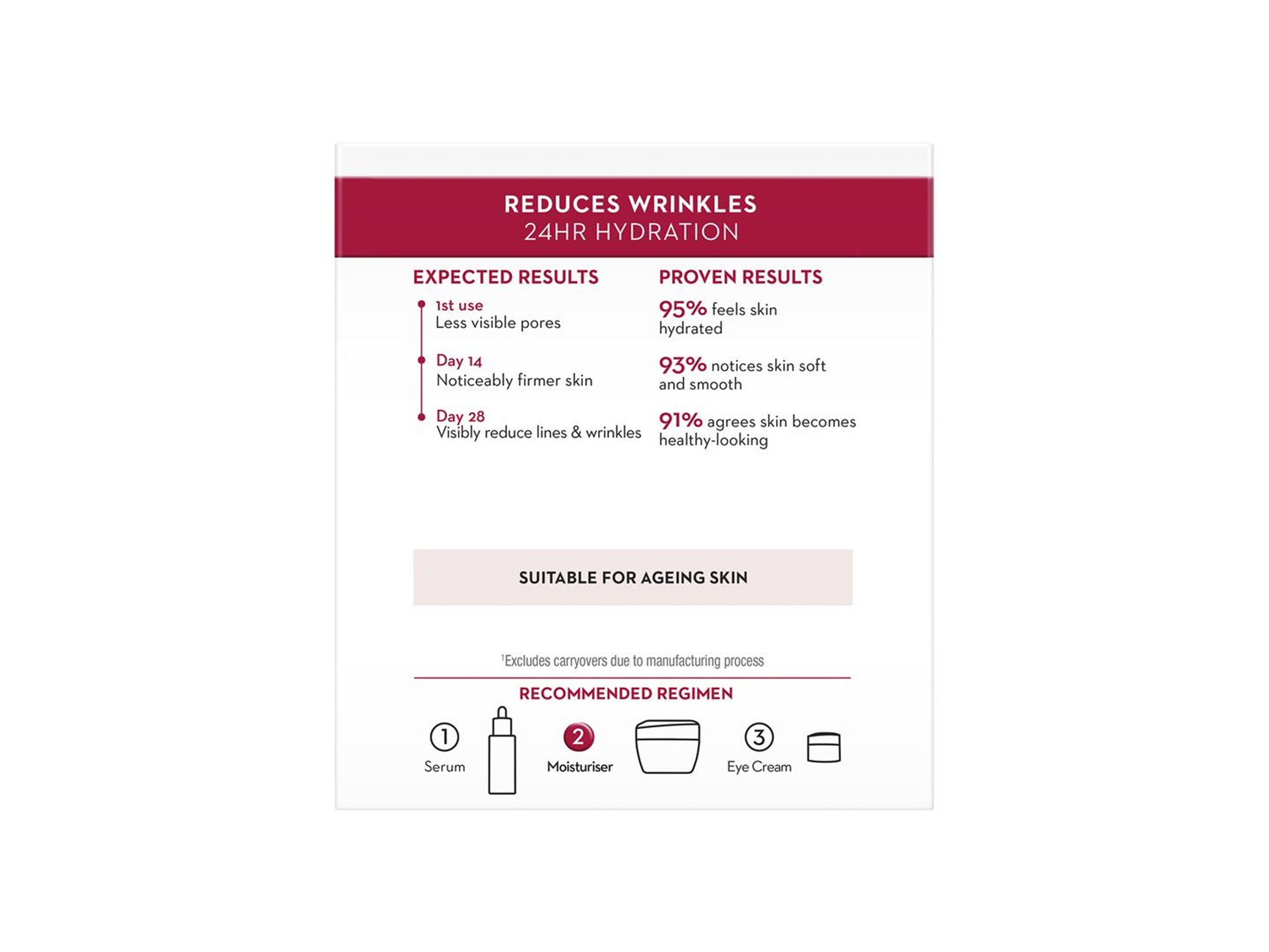 Aqua, Glycerin, Niacinamide, Dimethicone, Isopropyl Isostearate, Caprylic/Capric Triglyceride, Panthenol, Tocopheryl Acetate (Vitamin E), Hydrolyzed Collagen, Amino Peptides, Stearic Acid, Cetyl Alcohol, Carbomer, Phenoxyethanol, Fragrance, Disodium EDTA.